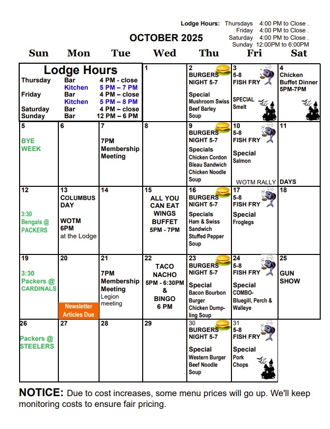 AYCE Wings Buffet 10-15-25 for Members and Qualified Guests
