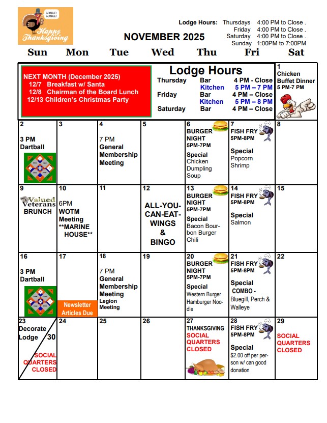 AYCE Wings Buffet & Bingo 11-12-25 for Members and Qualified Guests