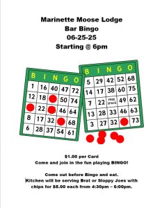 Marinette Moose Lodge Events are for Members and Qualified Guests Only unless otherwise stated.