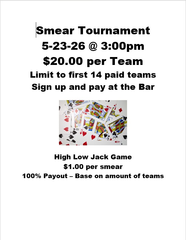 5-23-26 Lodge Smear Tournament for Members & Qualified Guests Published: 4 January 2026 Written by Marinette Moose Lodge No comments Categories: Upcoming Events