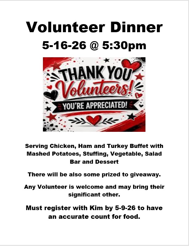 5-16-26 Lodge Volunteer Dinner for Members and Qualified Guests Published: 28 April 2026 Written by Marinette Moose Lodge No comments Categories: Upcoming Events