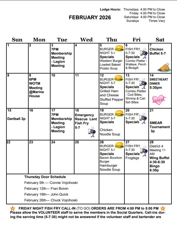 2-18-26 Moose Legion Lenten Fish Fry for Emergency Rescue Squad is an Open to the Public Fundraising Event